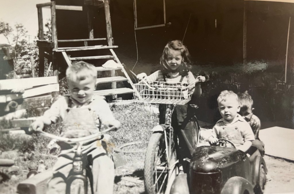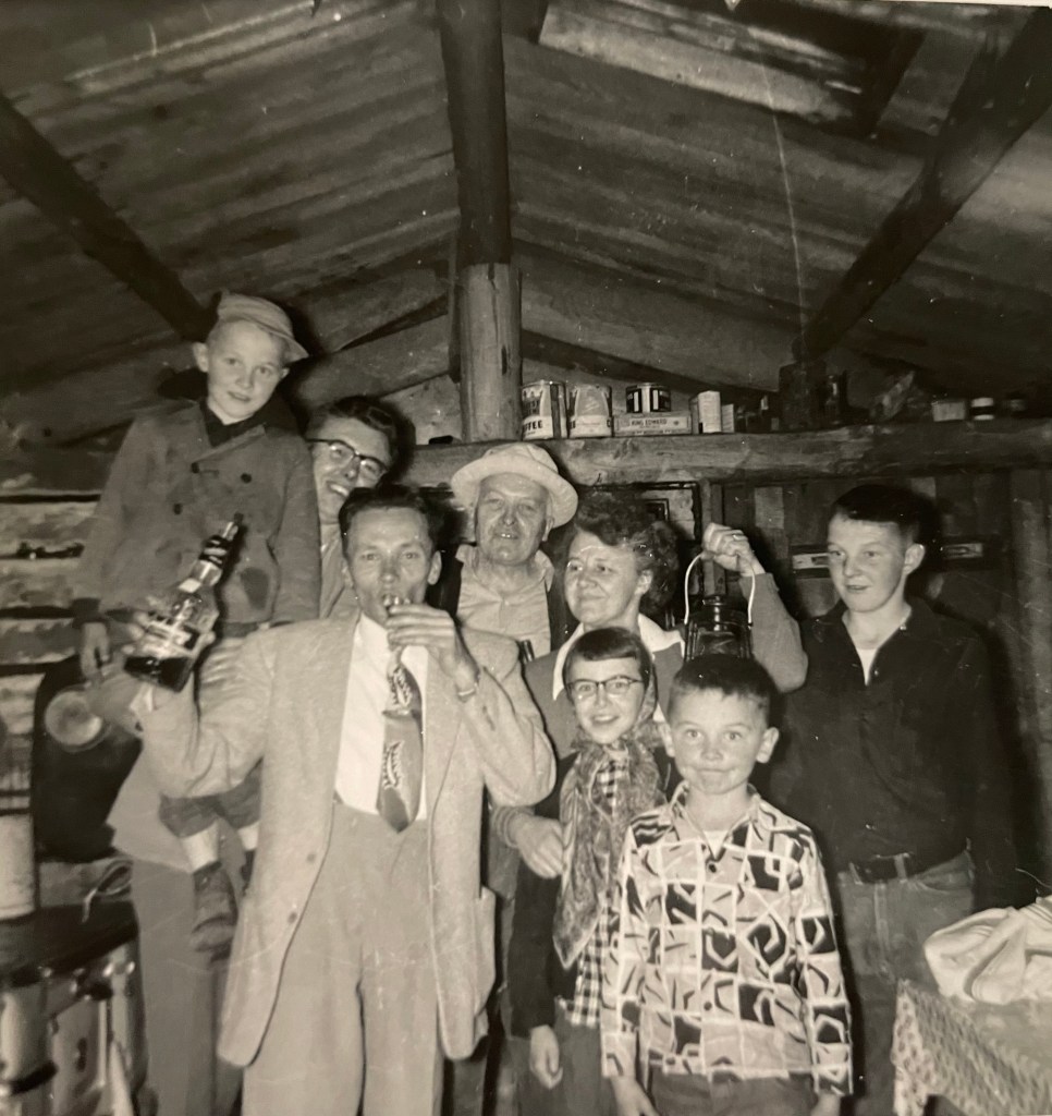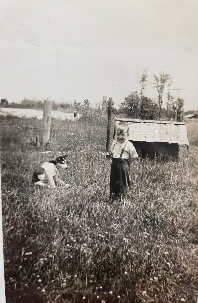 Buckshot, George, Lillian, Jim, Joseph and Margaret outside the Potvin residence in Schaffer Michigan