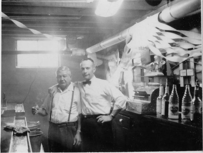 At first, he rented the building, then purchased it from Art. A couple years later he was able to obtain a liquor license. The first few years, patrons were not allowed to sit at the bar, only stand up. There were no beer bottles yet, so take out was by what they called “lard pails”. Refrigeration was by ice. There was no Plumbing. Outdoor toilets, wood shed, & ice house 1933 – 1947.